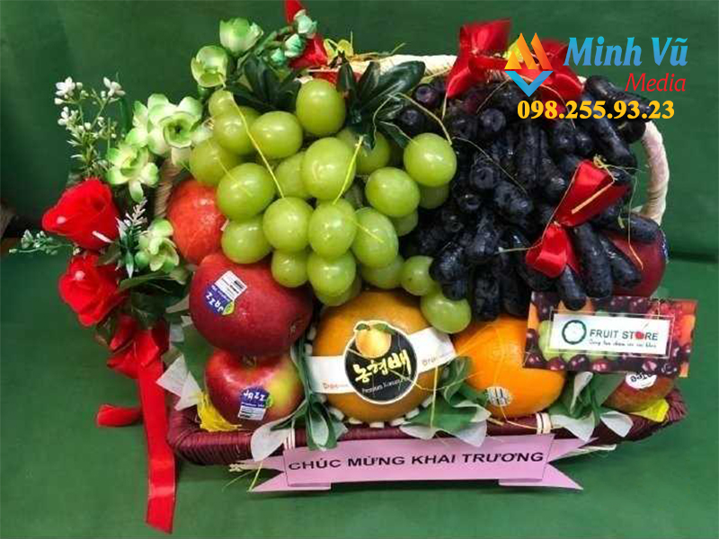 Giỏ quà bao gồm bánh, kẹo, trái cây, trà hoặc rượu, có kích thước nhỏ gọn nên cũng thuận tiện cho viêc mang đi và tặng. Đặc biệt nếu bạn đến sớm có thể tặng giỏ quà để lên mâm cúng khai trương. Có thể nói đây là món quà vừa sang trọng vừa có thể sử dụng được sau đó. Màu sắc tươi tắn cũng giúp cho không gian của công ty ngày khai trương thêm sinh động hơn.