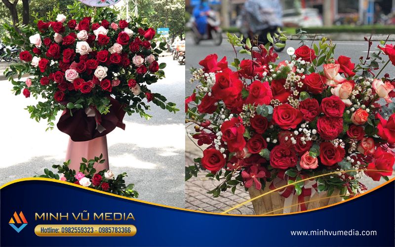 - Mẫu hoa mừng khai trương chủ đạo hoa hồng