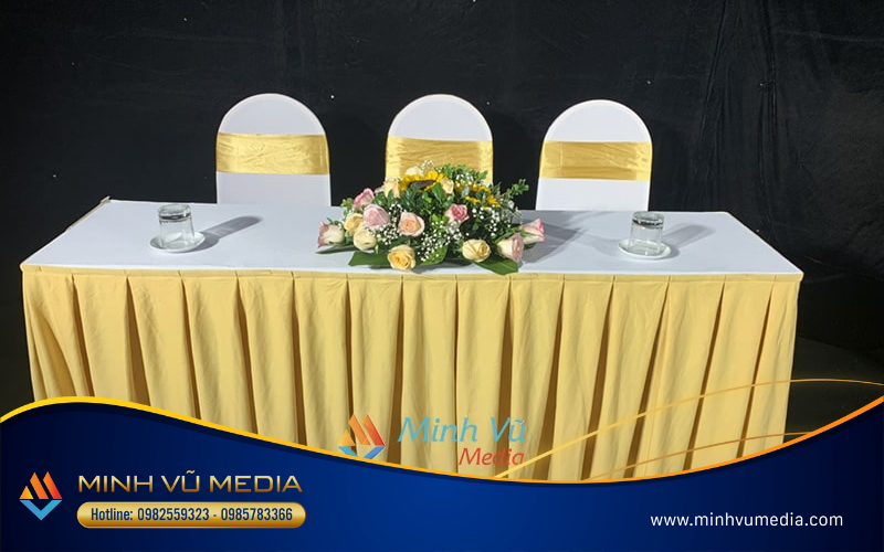 Các phụ kiện trên sẽ giúp tăng thêm vẻ đẹp và sự chuyên nghiệp cho sự kiện của bạn. Minh Vũ Media sẽ cung cấp các phụ kiện này để đảm bảo rằng mọi chi tiết của bàn ghế và không gian sự kiện đều được chuẩn bị một cách hoàn hảo.