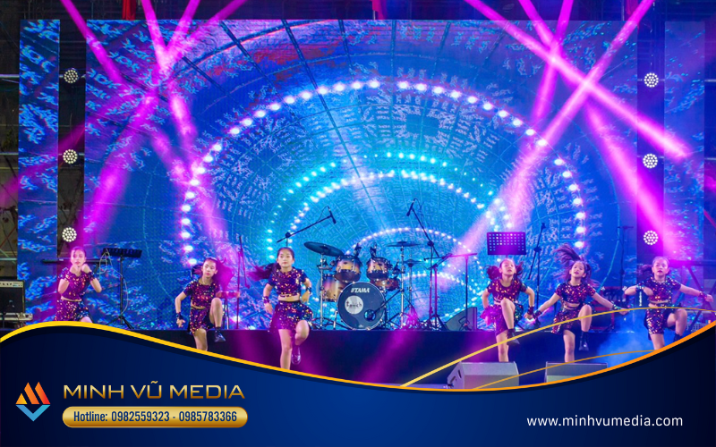 Màn hình LED có thể hiển thị hình ảnh, video và các hiệu ứng đồ họa. Trong khi ánh sáng sân khấu có thể tạo ra ánh sáng phụ hợp. Tạo điểm nhấn cho các phần trên sân khấu.