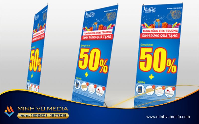 Dịch vụ in standee khai trương trọn gói – giá tốt- Minh Vũ Media