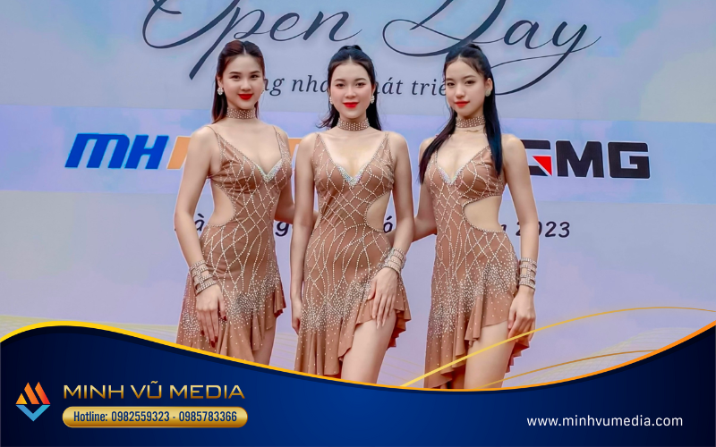 - Minh Vũ Media có sẵn đội ngũ nhân viên đa dạng. Bao gồm MC, người mẫu, nhân viên phục vụ, nhân viên truyền thông và nhiều vị trí khác. Chúng tôi sẽ tư vấn và đề xuất nhân sự phù hợp với yêu cầu và mong muốn của khách hàng. Đảm bảo sự phù hợp với chủ đề và mục tiêu của sự kiện.