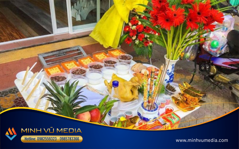 - Chuẩn bị các vật phẩm linh thiêng cho nghi lễ. Cụ thể như: lễ mặn, lễ ngọt, hoa quả, bài khấn khai trương,….