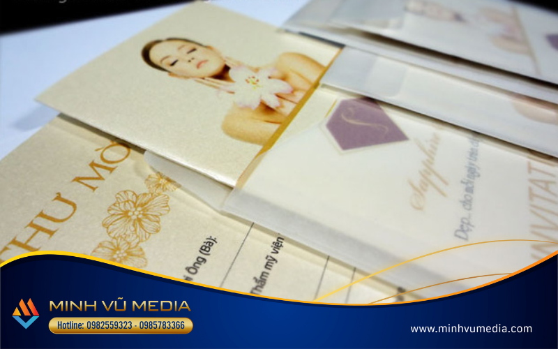 - Thiết kế và in ấn các vật phẩm quảng cáo. Cụ thể như thiệp mời, banner, backdrop, áp phích, brochure, và biểu ngữ. Minh Vũ sẽ tạo ra những thiết kế sáng tạo và độc đáo, phản ánh phong cách và thông điệp của spa.
