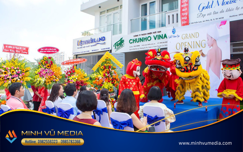 Minh Vũ Media là đơn vị chuyên nghiệp, có kinh nghiệm và uy tín cao trong lĩnh vực tổ chức sự kiện. Với sự đồng hành của Minh Vũ, đã có rất nhiều những sự kiện được tổ chức thành công. Tiêu biểu như: tổ chức khai trương cửa hàng, tổ chức khánh thành, tổ chức trung thu, tiệc tất niên,… Đối với tổ chức sự kiện khai trươn spa, Minh Vũ cung cấp dịch vụ trọn gói đi kèm với những dịch vụ cụ thể sau đây: