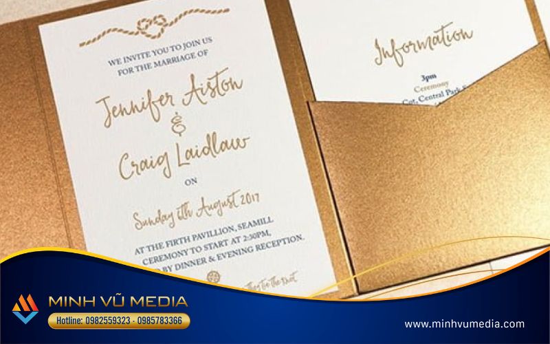 Sử dụng hiệu ứng đặc biệt như nổi, mờ, hoặc in ấn bóng. Để tạo điểm nhấn và tạo sự thú vị cho thiệp mời. Kỹ thuật in ấn cao cấp như in trên giấy cứng, giấy có chất liệu đặc biệt, hoặc sử dụng màu sắc đặc biệt cũng là một xu hướng phổ biến.