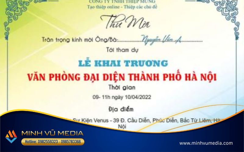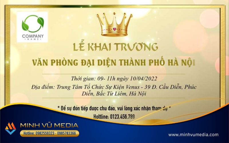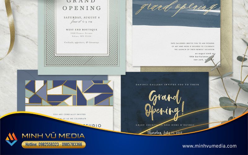 Bạn đang tìm kiếm gợi ý về thiệp mời khai trương cho sự kiện của mình? Minh Vũ Media đã sưu tầm cho bạn hơn 20 mẫu thiệp mời đẹp mắt và độc đáo để làm nổi bật sự kiện của bạn. Hãy cùng khám phá những ý tưởng sáng tạo và thiết kế tuyệt vời để tạo nên một buổi khai trương đáng nhớ!