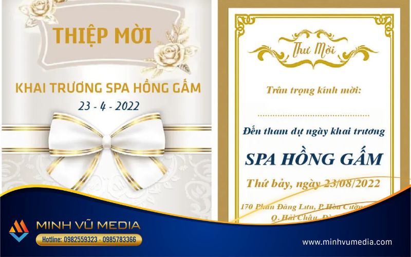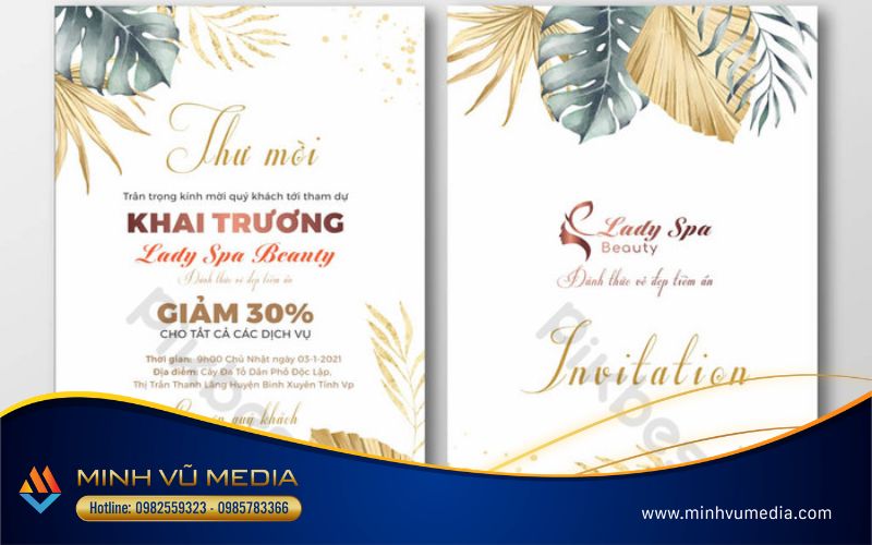 Thư mời khai trương spa là một trong những công tác chuẩn bị không thể thiếu của một lễ khai trương. Tìm hiểu ngay 20+ Mẫu thư mời khai trương spa dưới đây và cách thiết kế thiệp mời khai trương ấn tượng, độc đáo và ý nghĩa cùng Minh Vũ Media.