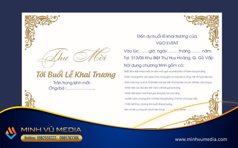 - Nội dung thư mời khai trương kích thước 8x12cm