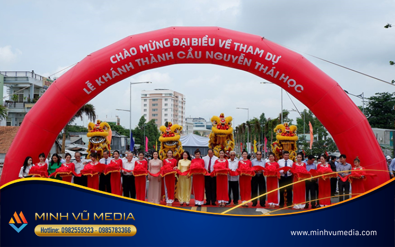 Với kinh nghiệm và sự chuyên nghiệp, Minh Vũ cam kết mang đến cho khách hàng một trải nghiệm tuyệt vời khi tổ chức cắt băng khánh thành. Chắc chắn sẽ ứng mục tiêu và vượt qua mong đợi.