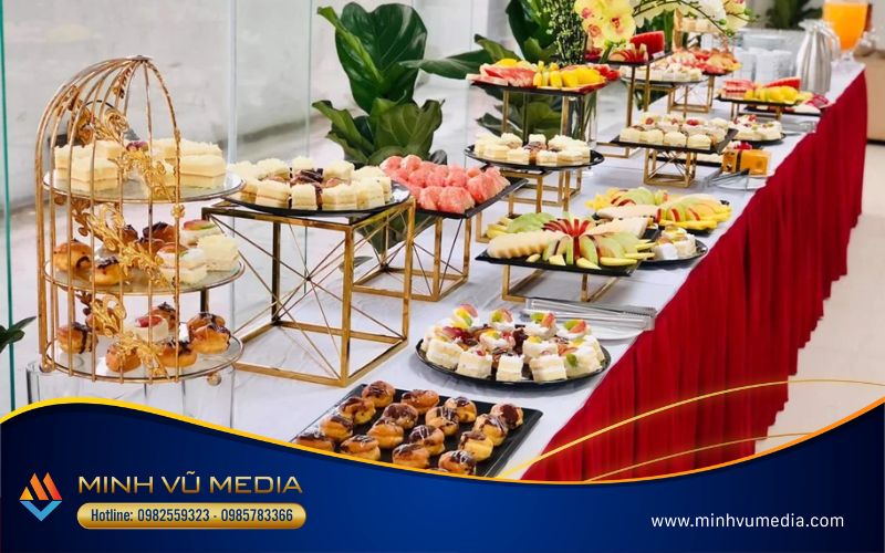 Minh Vũ có sẵn các menu tiệc đa dạng và phong phú. Từ những loại hoa quả, bánh ngọt cho tiệc trà đến những menu tiệc mặn đặc biệt. Bạn có thể lựa chọn theo khẩu vị và yêu cầu của khách mời. Đảm bảo mọi người đều có được sự hài lòng và thưởng thức các món ăn ngon.