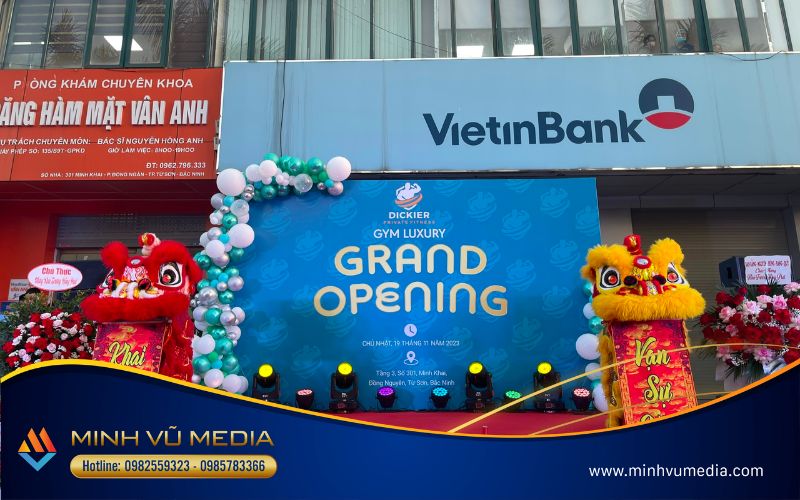 Minh Vũ Media tự hào là đơn vị tổ chức khai trương, tổ chức sự kiện chuyên nghiệp tại khu vực miền Bắc. Với sự nhiệt thành, tận tâm và tâm huyết trong từng sự kiện, Minh Vũ Media đã nhận được sự tin tưởng của Dickier để tổ chức sự kiện khai trương phòng Gym lần này.