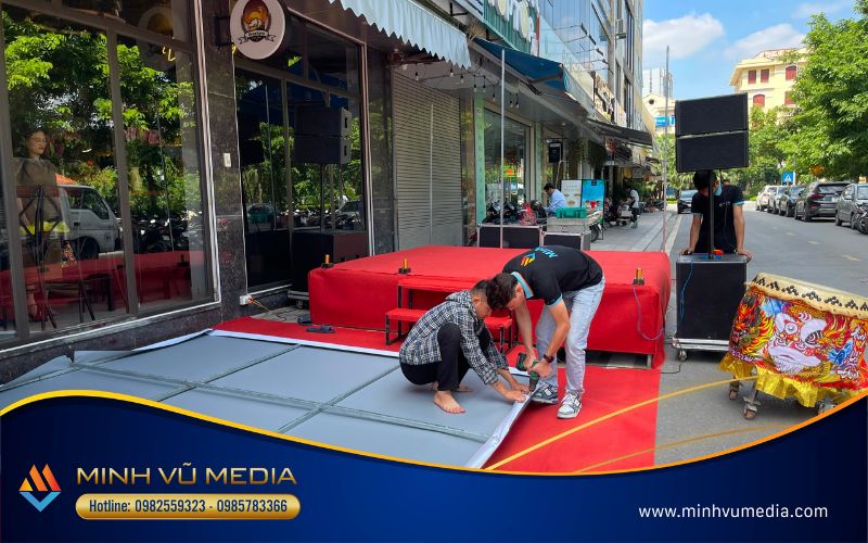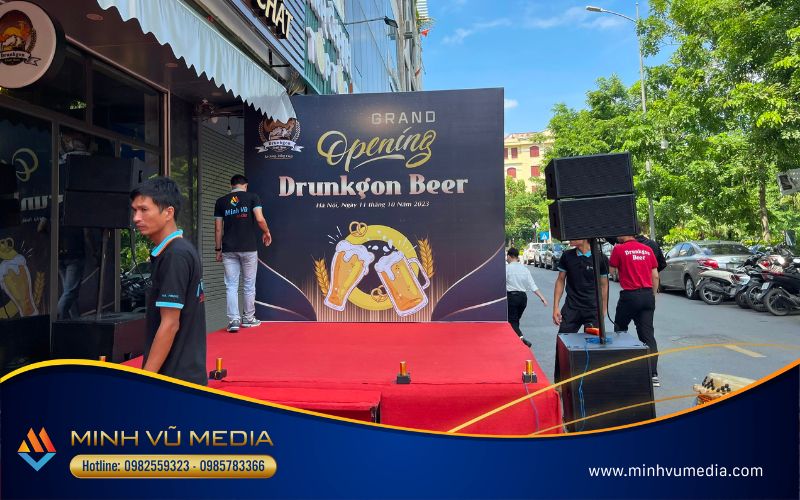 Đối với sự kiện khai trương quán bia Drunkgron, sự tận tâm của Minh Vũ Media được ghi lại trong hình ảnh setup buổi lễ khai trương dưới đây: