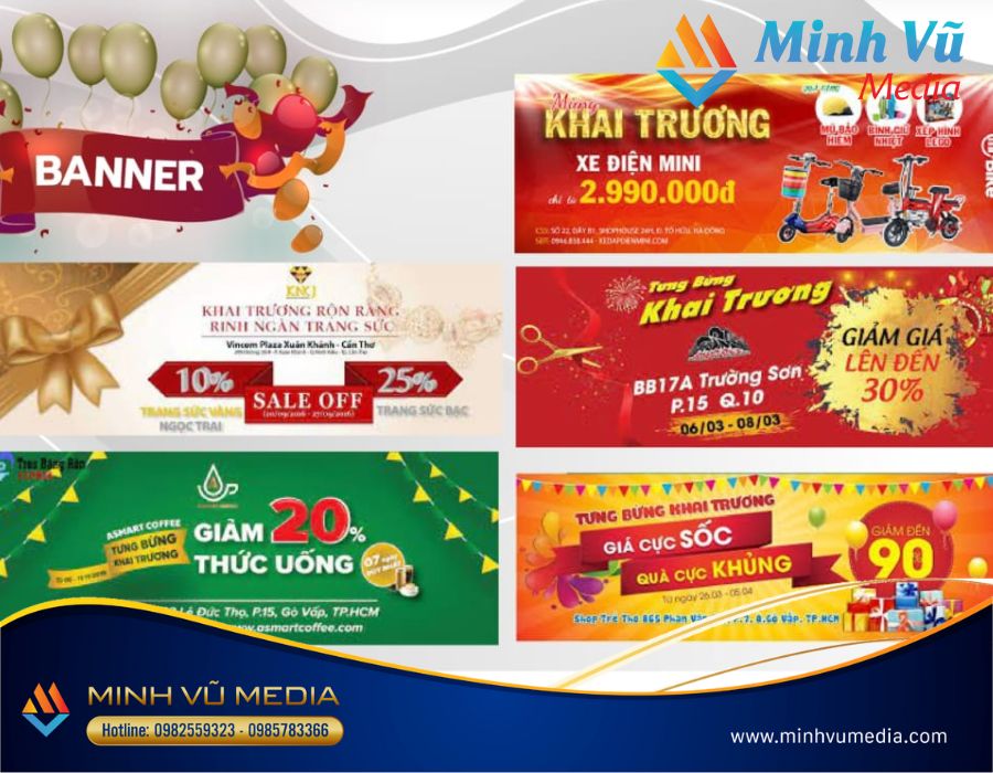 Hình ảnh thiết kế banner sự kiện khai trương do Minh Vũ Media thực hiện