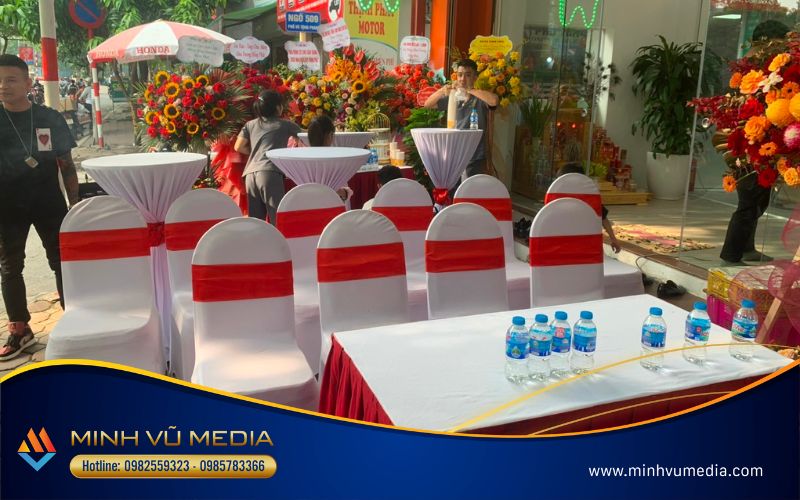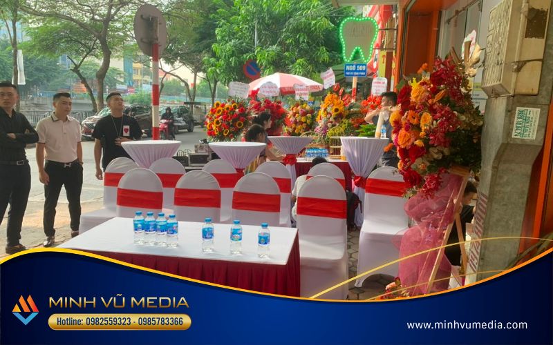 Minh Vũ Media là đơn vị tổ chức sự kiện chuyên nghiệp ở Hà Nội. Với sự uy tín, chuyên nghiệp và nhận được sự tin tưởng của đơn vị, Minh Vũ Media đã đồng hành và cung cấp dịch vụ cho sự kiện khai trương. Điểm tên một số dịch vụ được Minh Vũ Media thực hiện tại sự kiện như sau: