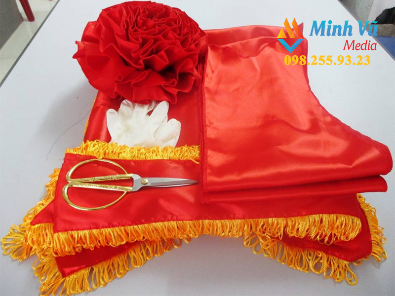 Khi lựa chọn dịch vụ tổ chức lễ khánh thành, khai trương trọn gói tại Minh Vũ Media. Sẽ bao gồm các thiết bị sự kiện, nhân sự phục vụ trong đó có bộ dụng cụ cắt băng kèm theo một kịch bản hấp dẫn và án tượng.